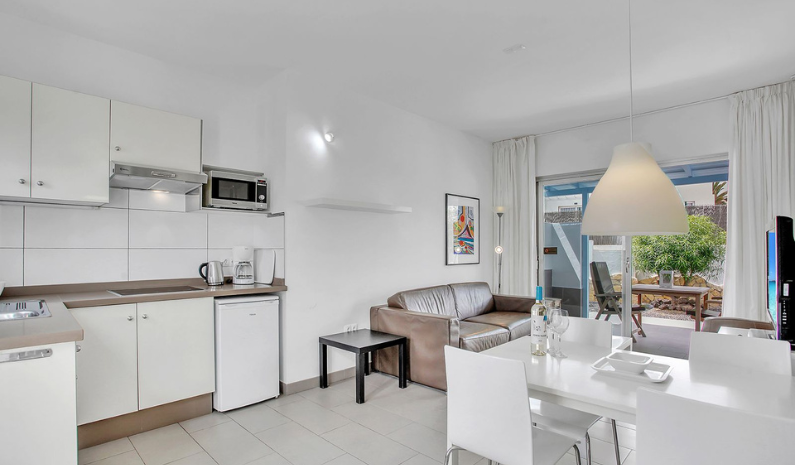 Apartment combining a living room and fully equipped kitchen, with a separate bedroom, bathroom and furnished terrace providing an intimate and comfortable space for a more exclusive experience.