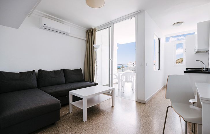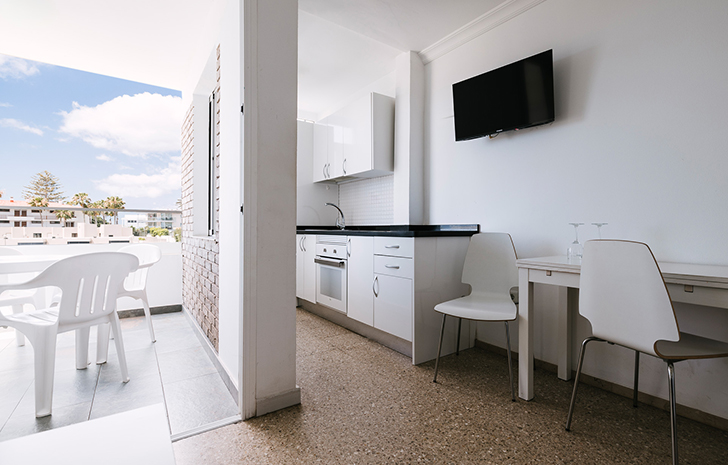 The studios feature a bedroom with two single beds connected to the living area with a flat-screen TV with international channels, air conditioning and a balcony overlooking the pool.