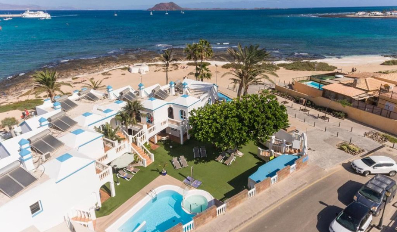 El complejo de Apartamentos LIVVO Galera Beach está ubicado en primera línea de playa en Corralejo, con vistas directas a la Isla de Lobos. Dispone de 16 apartamentos totalmente equipados, todos con terraza o balcón amueblado. Las instalaciones incluyen piscina de adultos, piscina infantil y uso gratuito de hamacas, ofreciendo un entorno ideal para el descanso.